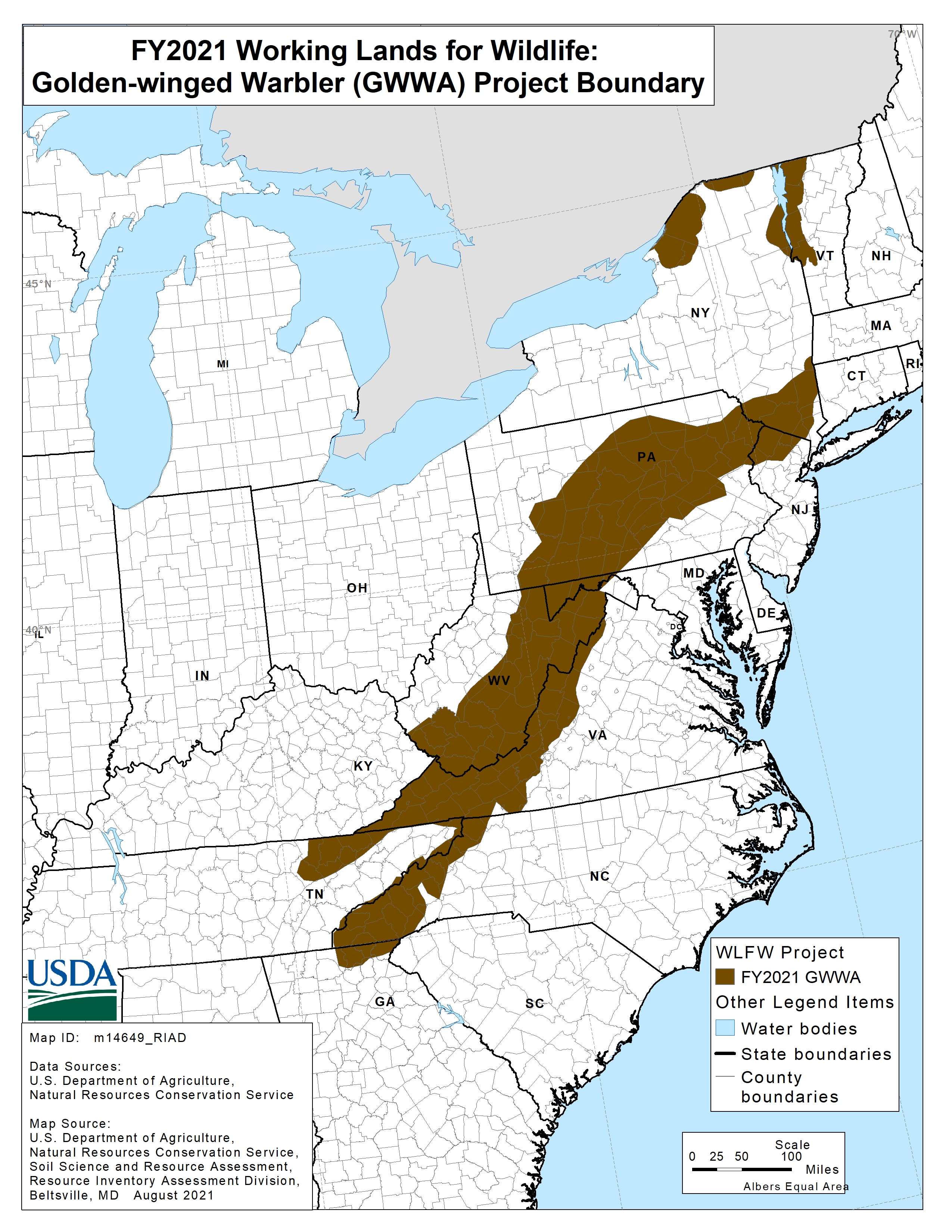 You are here: Home / warbler-images / Golden Winged Warbler project boundary map