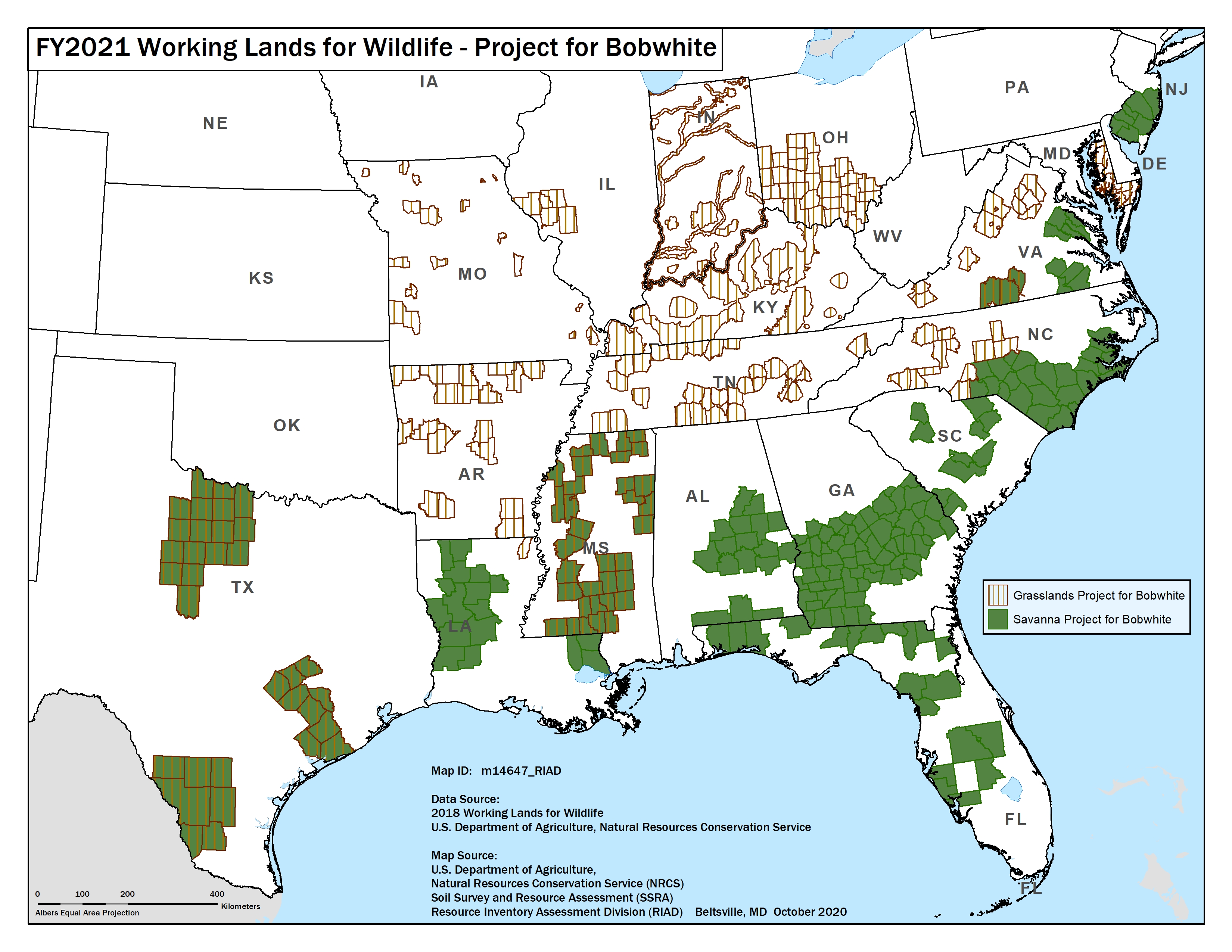 WLFW Northern bobwhite, Grasslands, and Savannas National Map