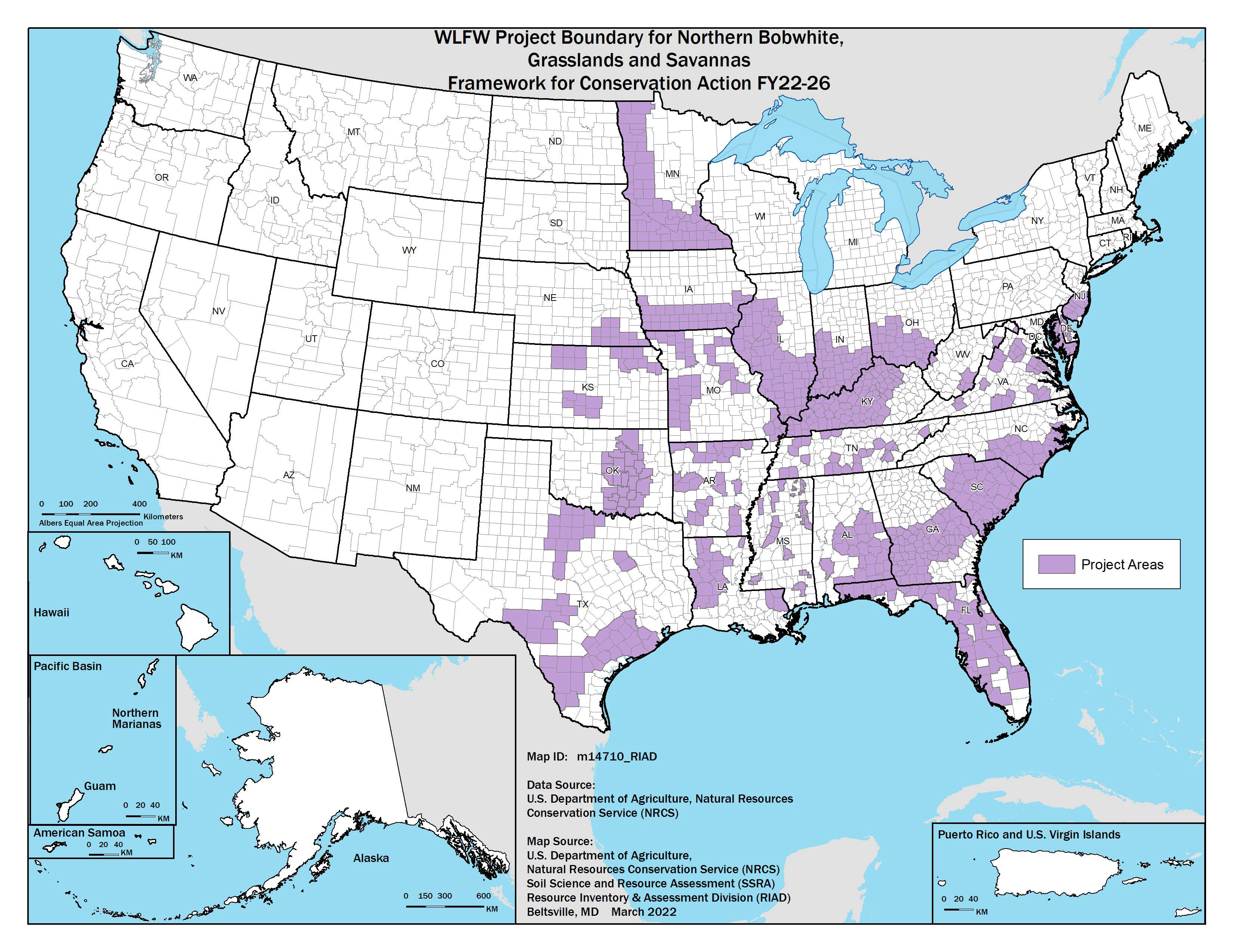 WLFW Northern bobwhite, Grasslands, and Savannas National Map