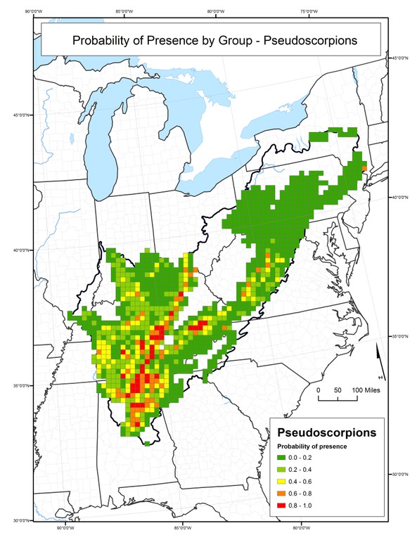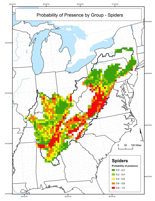 Prediction maps for each of the nine groups. These are potentially important both to predict areas where to find particular groups and to determine regions of overall high habitat quality where species richness is expected to be high.