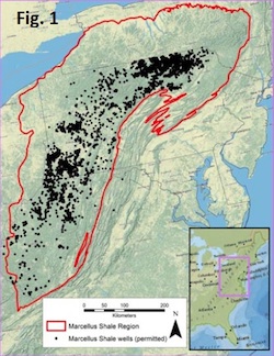 Map showing the permitted Marcellus Shale wells within the Appalachian LCC area.